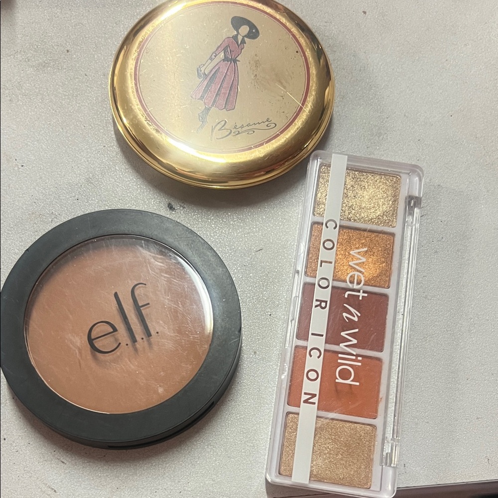 Used elf bronzer besame powder compact cocoa shade and wet n wild color icon pallet used in like new condition