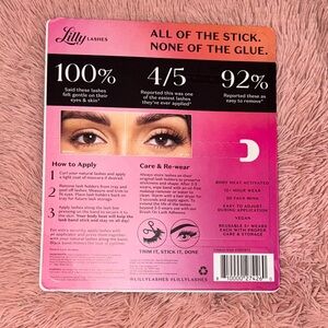 -Lilly Lashes Self-Adhesive Faux Mink Lashes, a glue-free lash system activated by body heat.