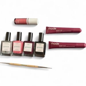 Make up bundle, set one perfume, 4 nail polishes manicurist two Rhode lip tints one elf blush one vanilla perfume, all like new box