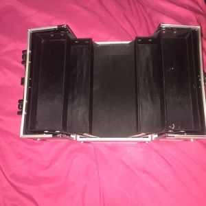 Silver makeup case. With 2 layers on each side and one big layer at the bottom, and in great condition.