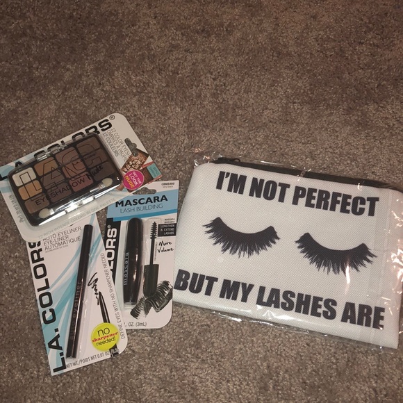 L. A. Colors eyeshadow palette, auto eyeliner, mascara & a makeup bag! All unused and in packaging.