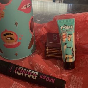 Brand new in-the-box Benefit makeup set. Mascara full size, travel size The Porefessional, bronzer