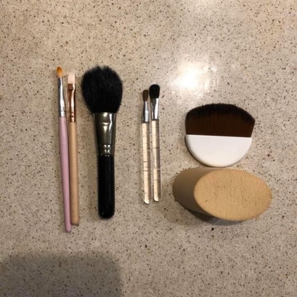 6 makeup brushes (including two Clinique small brushes and one The Body Shop brush — these 3 brushes brand new; other 3 used and sensitized)