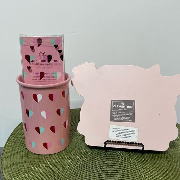 Makeup Brush Trio with Cup Holder & Gnome Valentines Sign NWT