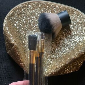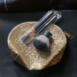 New set of makeup brushes in glitter bag. Tom Ford sample perfume. One elf brush never used.