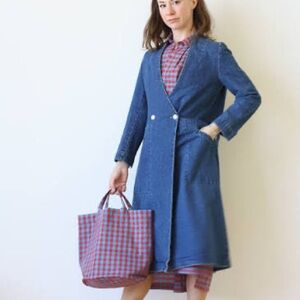 Martha Red/Blue Check Tote Bag with one interior pocket. Lined in natural linen and fully reversible for an additional look. 100% Linen 10 x H 13 inches Maki is designed by Makie Yahagi in New York and Tokyo and produced in New York City.