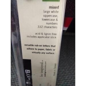 Features: Acid and lignin free, includes applicator stick, versatile rub-on letters that adhere to paper, fabric or virtually any surface.