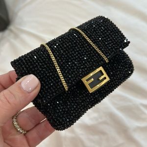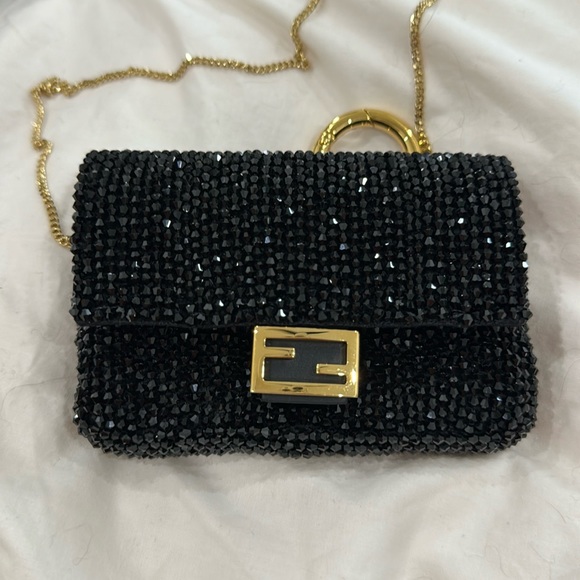 100% authentic FENDI Nano Baguette Ricamo Crystal black and gold