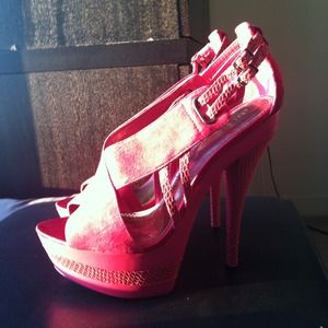 Pink Suede open toe pumps from Bakers only worn TWICE! Still in the plastic wraps!