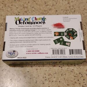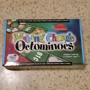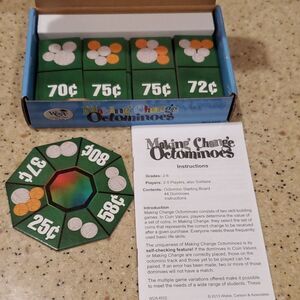 This is a like new Making Change Octominoes game. This game provides playful practice in counting money and making change. Great for homeschool or for classroom.