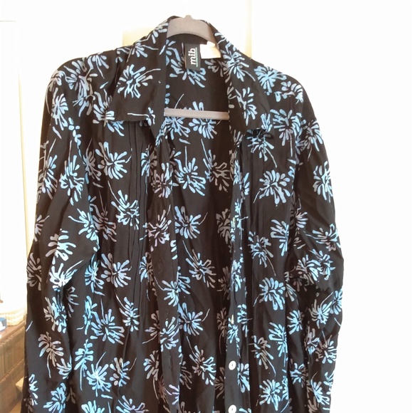 Button-up batik long-sleeve shirt in rayon, from Making It Big (On The Plus Side, https://www.ontheplusside.com/). Washed, but never worn, excellent condition. Runs large.