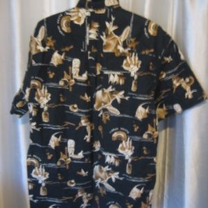 Mako Sportswear Aloha Hawaii Men's Black/Tan/White Hawaiian Shirt Sz L Pre-Owned