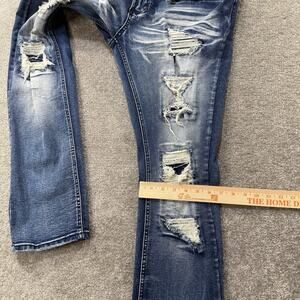 Makobi Biker Jeans 40x32 Blue Distressed Ripped Denim Stitch Stretch Slim Fit