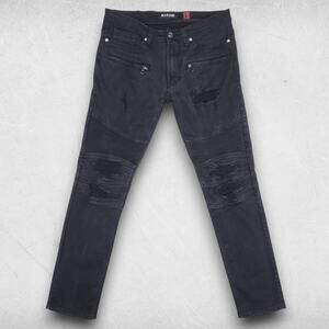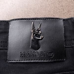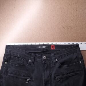 Makobi Biker Jeans Mens 34x32 Black Moto Zip Distressed Rip & Repair Streetwear