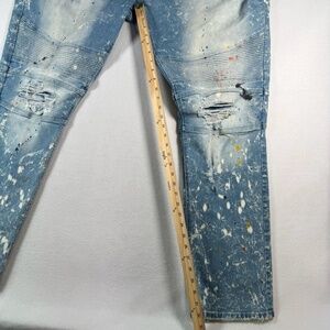 Makobi Jeans Mens 46 Blue Skinny Moto Distressed High Rise Stretch