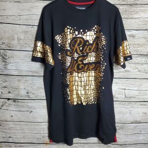 Makobi Men’s Black & Gold T-Shirt “RICH 4 EVER” Size Large