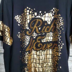 Makobi Men’s Black & Gold T-Shirt “RICH 4 EVER” Size Large