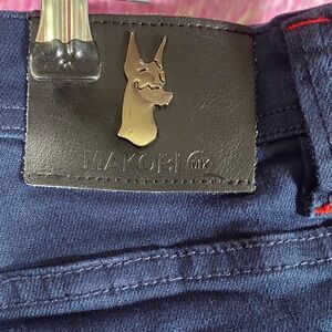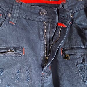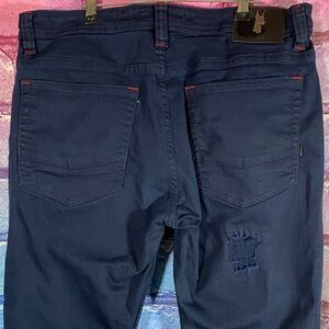 Makobi Moto Jeans 36x34 Navy Mens Distressed Slim Fit Biker Denim Pants Stretch