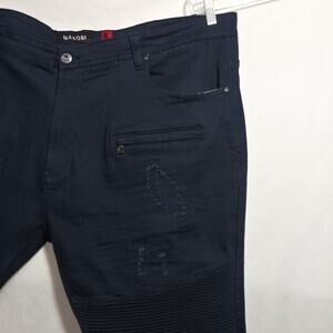 Makobi Prado Biker Jeans with Rip & Repair - Navy M 1786 Size 50X27