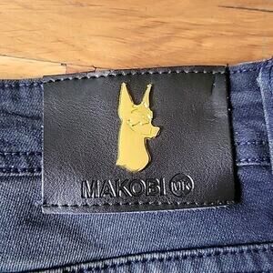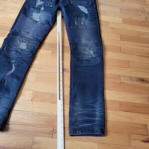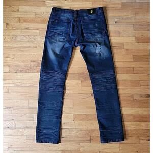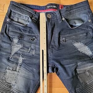 Makobi Prado Biker Rip Repair Moto Jeans Blue Dark Wash Low Rise Straight Leg