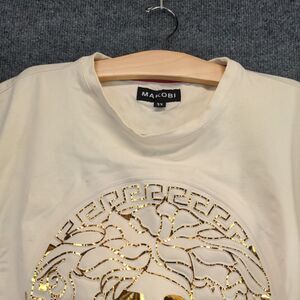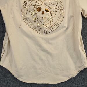 Makobi Womens Top Plus Size 3X Cream Shirt Shiny Skull Graphic Logo