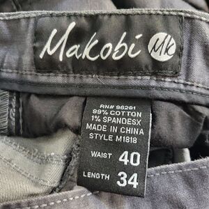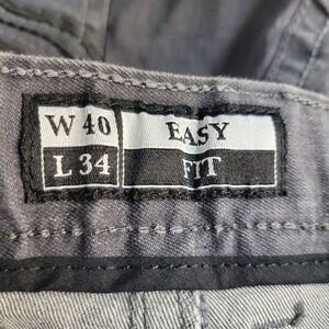 Gray color, straight leg, flat front, button closure, zip fly, belt loops, 5-pocket design. Great pre-owned condition!