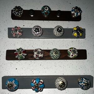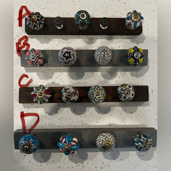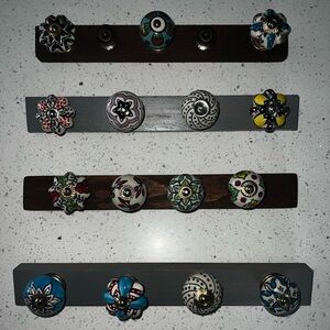 Original MAK's RAX custom jewelry rack. Super cute rack with colorful vintage knobs. I use mine for jewelry but they can be used for hanging keys, towels, dog leashes, cute in bedrooms, bathrooms or kitchens. The anywhere Rax. Price is for ONE single rack. This listing is for selecting B
