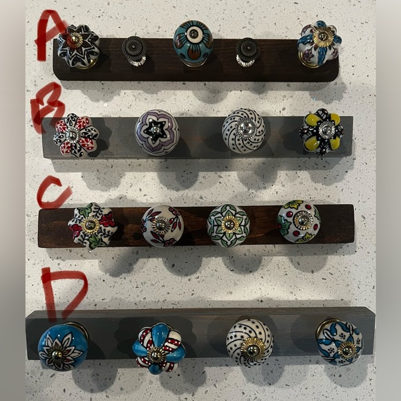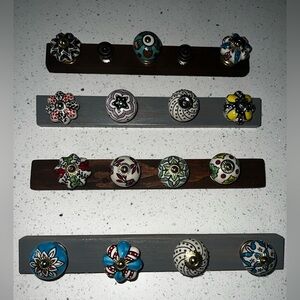 Original MAK's RAX custom jewelry rack. Super cute rack with colorful vintage knobs. I use mine for jewelry but they can be used for hanging keys, towels, dog leashes, cute in bedrooms, bathrooms or kitchens. The anywhere Rax. Price is for ONE single rack. This listing is for selecting C