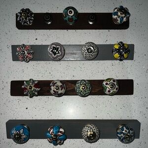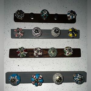 Original MAK's RAX custom jewelry rack. Super cute rack with colorful vintage knobs. I use mine for jewelry but they can be used for hanging keys, towels, dog leashes, cute in bedrooms, bathrooms or kitchens. The anywhere Rax. Price is for ONE single rack. This listing is for selecting D