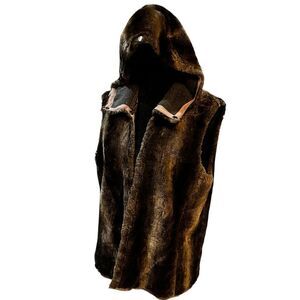 Maksar Faux Fur lined hooded sleeveless vest non functional snaps. Size Medium