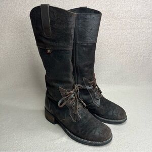 Maël Leather Tall Lace Up Riding Boots-Womens 8-Dark Brown-Y2K-Festival-Cottage