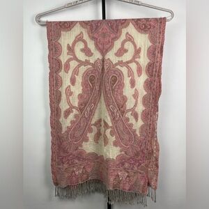 Mala Alisha Pink Cream Paisley Batik Print 100% Pure Wool with Gray Fringe