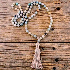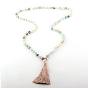 Mala Meditation Beads yoga bohemian necklace blue boho turquoise natural