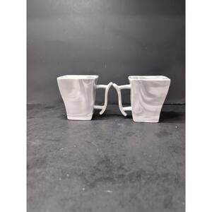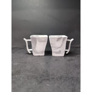 Malacasa Marble Wave Mugs, Porcelain Cups, Squared, Italy Porcelain, Set of 2