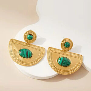 Malachite 18K Gold Stainless Steel Waterproof Earrings