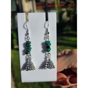 Malachite Chips Christmas Tree Charm Gemstone Festive Earrings