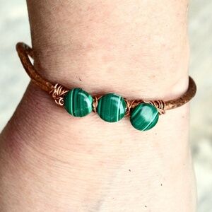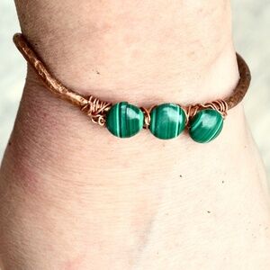 Hi thank you for looking at this brand new design cuff bracelet. I created this with genuine natural green untreated malachite and solid copper.