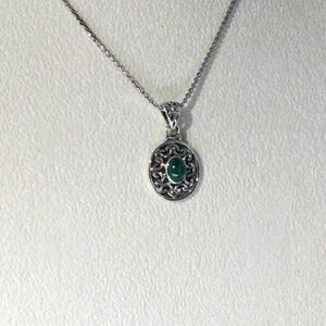 Malachite Pendant Necklace Sterling Silver