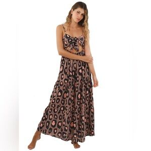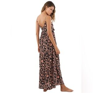 Malai Amal Leopard Print Maxi Dress small pink and brown multi-way