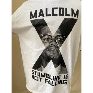 Malcolm X Unisex White/Black "Stumbling Is Not Falling" Graphic Short Sleeve Crew Neck Tee. Size Medium measures: 20“ (40“D) armpit to armpit, 28" length. Brand new with tags, never worn. No discoloration, fading, noticeable stains, rips or holes. Clean, smoke-free home.