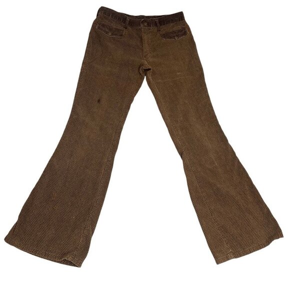 Male Slacks Brown 70s Corduroy Bellbottoms Scovall Zip Flare Jeans Size 34x32