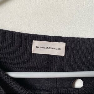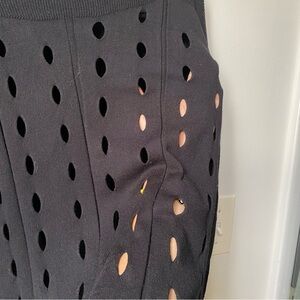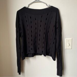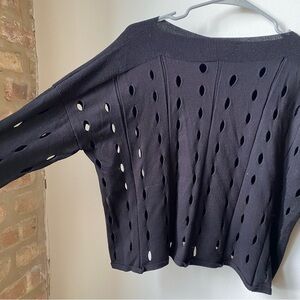 Elegant black knit top with unique cutout detail. Ideal for chic layering.