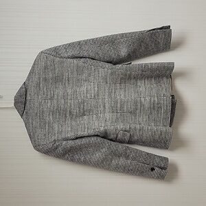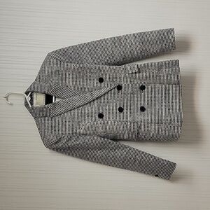 women's black and white blazer from Malene Birger euro sz 38. US sz 8 or medium. double breasted. 78% cotton, 22% polyamide, fully lined with 100% viscose. inside hidden pocket. 36" chest
