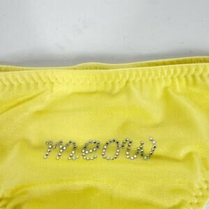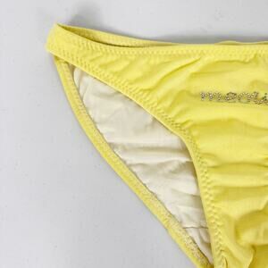 Sunny yellow Malia Mills vintage bikini bottom in size large features playful rhinestone embellishment for sparkling swim style.
