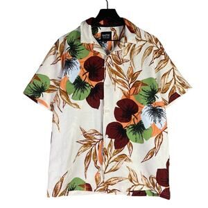 Malibu Beach Club Floral Hawaiian Shirt M Tropical Aloha Island Style Camp