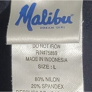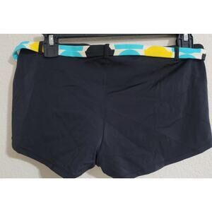 Malibu Black Teal Yellow Cheeky Swim Bottoms Large Belted Lightweight Pull On