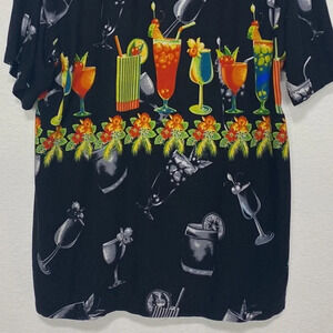 Malibu Dreams Mens Hawaiian Multicolor Novelty Button Down Cocktail Shirt Size L
