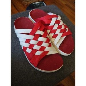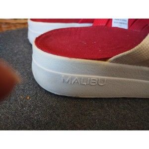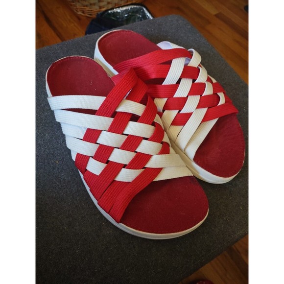 Malibu red and white woven semi platform slides. Unisex size 41. Men's 8 women's 10. Paid a heap and only worn twice. Light weight and very comfortable. No box.