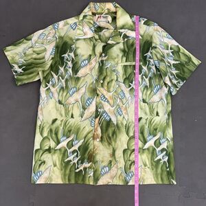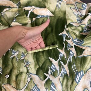 Malihini Hawaii Designer's Collectors Men's Green With Bird Print Hawaiian Shirt
