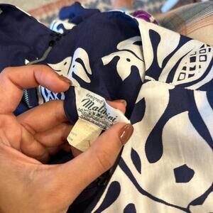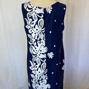 vintage muumuu designed by malihini made in hawaii dress. navy blue and white hawaiian dress. size large: reference measurements. Vintage, Vintage Hawaiian, Tiki Dress, Hostess Dress, Tropical
